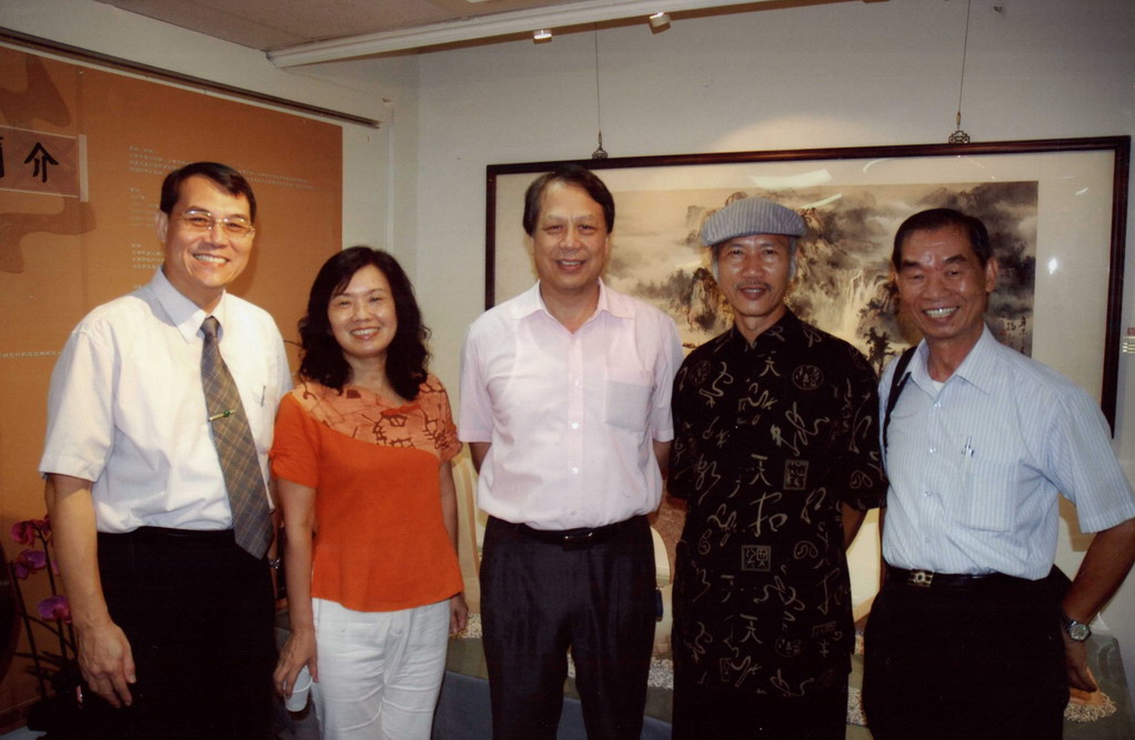 左起文化局許副局長、新聞處曹處長、市政府林參議、及畫家廖坤崧合照